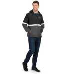 * Micron(tm) polyester is a lightweight, wind/water-resistant fabric * Lightweight fleece inner layer * Fully reversible * Front zipper * Detachable hood * Set-in sleeves * Front zippered pockets on both sides * Interior all access decoration zipper * Elastic cuffs * Open bottom